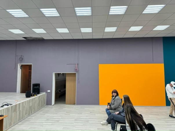 Завершился ремонт зрительного зала. Зрительный зал радует прекрасным ярким дизайном, много света, настоящая атмосфера творчества и культуры. Совсем скоро здесь появится одежда сцены и кресла для зрителей.